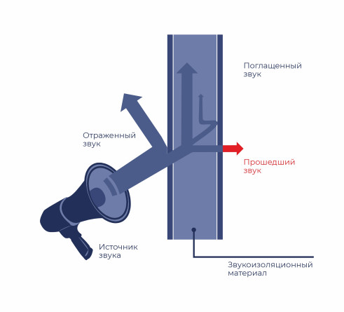 Звукоизоляция — снижение уровня шума, проникающего в помещения извне, путём отражения звуковой волны. Задача звукоизоляции – отразить звук и не позволить ему пройти сквозь стену помещения. Характерное строение звукоизолирующих материалов создает препятствие продвижению звука и отражает его. Количественная мера звукоизоляции ограждающих конструкций выражается в децибелах.