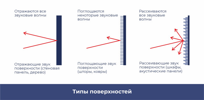 Таким образом поверхности (звукоизоляционные и звукопоглощающие) делятся на 3 типа: