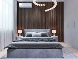 Акустическая панель, серый войлок, 2750х600х19мм, рейки МДФ дуб Медный