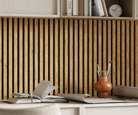 Акустическая панель, черный войлок, 2750х600х19мм, рейки МДФ дуб Старинный натуральный
