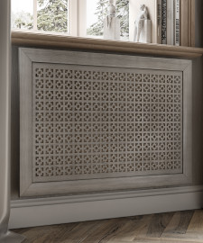 Экран для радиатора, МОДЕРН, рамка 600х600мм, перфорация ДАМАСКО, дуб серый