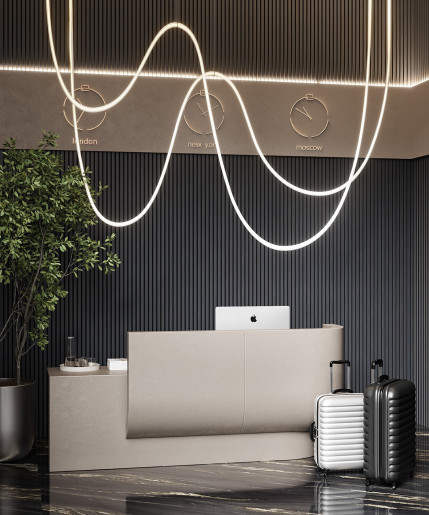 Декор панелей – рейки из черного мебельного МДФ, облицованные шпоном:  устойчивы к деформации, привносят в интерьер умиротворение и гармонию, сохраняют связь с природой.