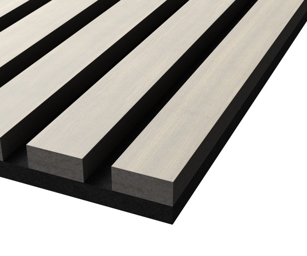 Акустическая панель, черный войлок, 1200х600х21мм, рейки МДФ, шпон дуб клэр светлый