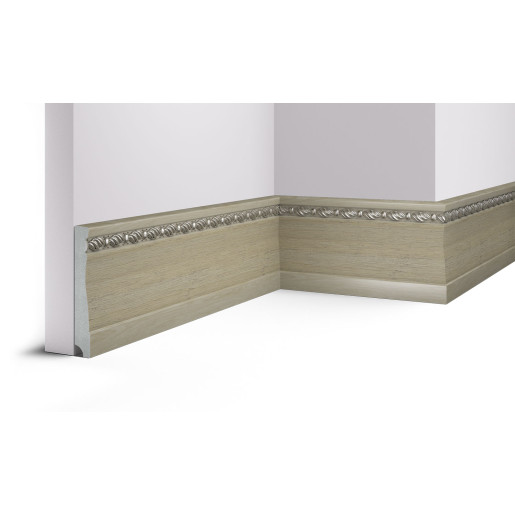 Плинтус применяется для декорирования стыка пола и стены. Коллекция «Скандинавия» выполнена в популярном скандинавском стиле: пастельные, белые цвета, в сочетании с изящными классическими и растительными орнаментами.