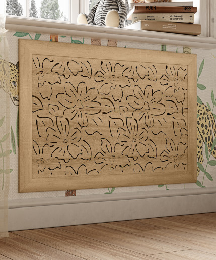 Экран для радиатора, FRESA, рамка 900х600мм, рисунок Цветы, дуб сонома