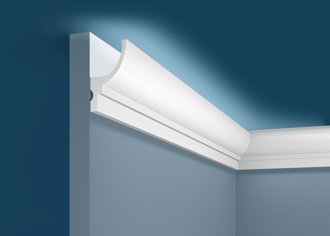 Карниз для скрытого освещения Decostore изготовлен из ударопрочного экополимера – это композит с добавлением светостабилизатора. Материал изделия уже огрунтован в своей массе, благодаря чему его можно не окрашивать. Он сохранит белый цвет и не пожелтеет со временем. Красить также легко, с экономией на краске, так как грунтовка уже есть!